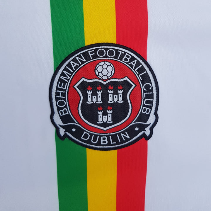 Details: The iconic Bohemians Bob Marley jersey in perfect condition with no damage to material, crest or sponsor. Bright colours and great shape to the jersey.