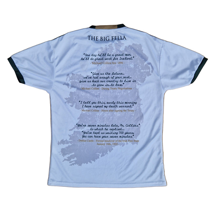 The Michael Collins Commemoration Jersey features a portrait of Michael Collins on the front with some of the most famous quotes from "The Big Fella" detailed on the back of the jersey. The new jersey pays tribute to the Irish revolutionary, soldier, and politician. Features Éire Harp embossed on the sleeve